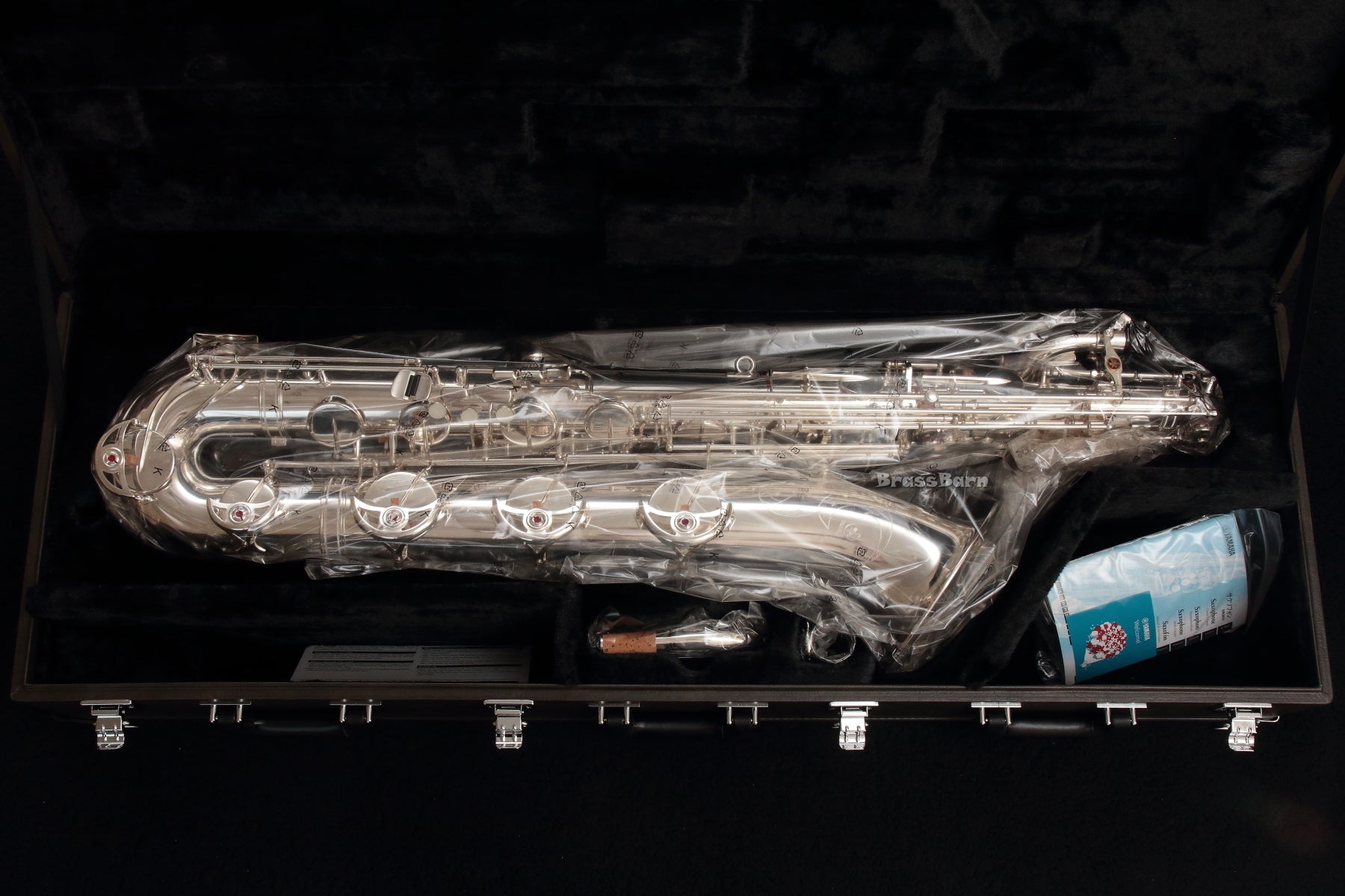 This professional, ribbed silver-plated YBS-62S features drawn tone holes, blue steel springs, leather and wool pads, ribbed and flanged post mountings, and is annealed, providing a rock solid low A. This complete retail kit comes with a Yamaha ebony 5C baritone mouthpiece, ligature, deluxe wheeled case, neck strap, cork grease, and polishing cloth.
