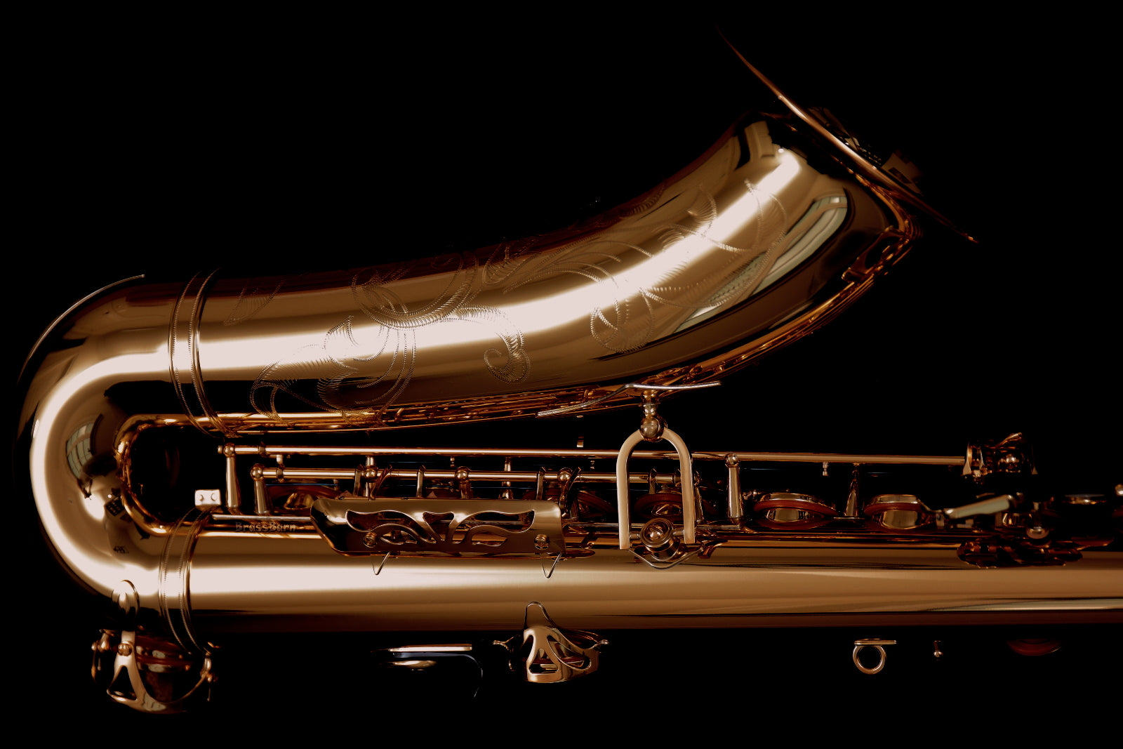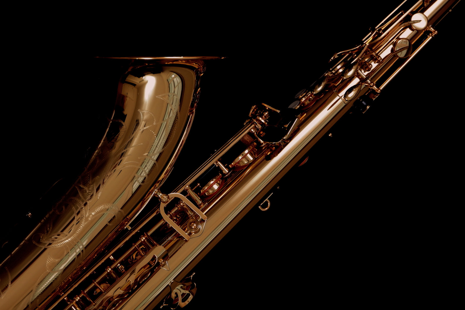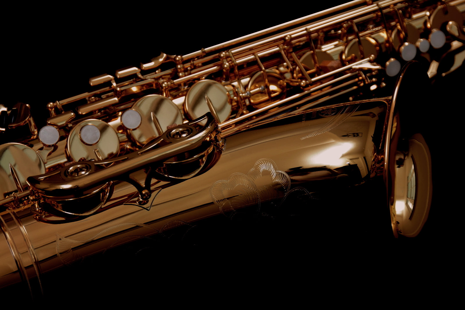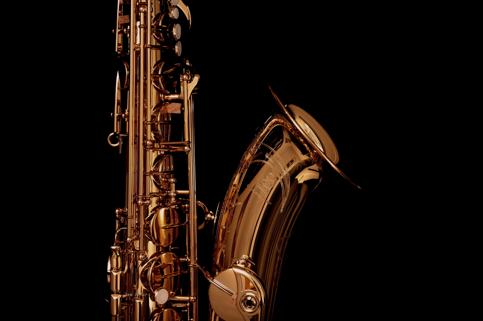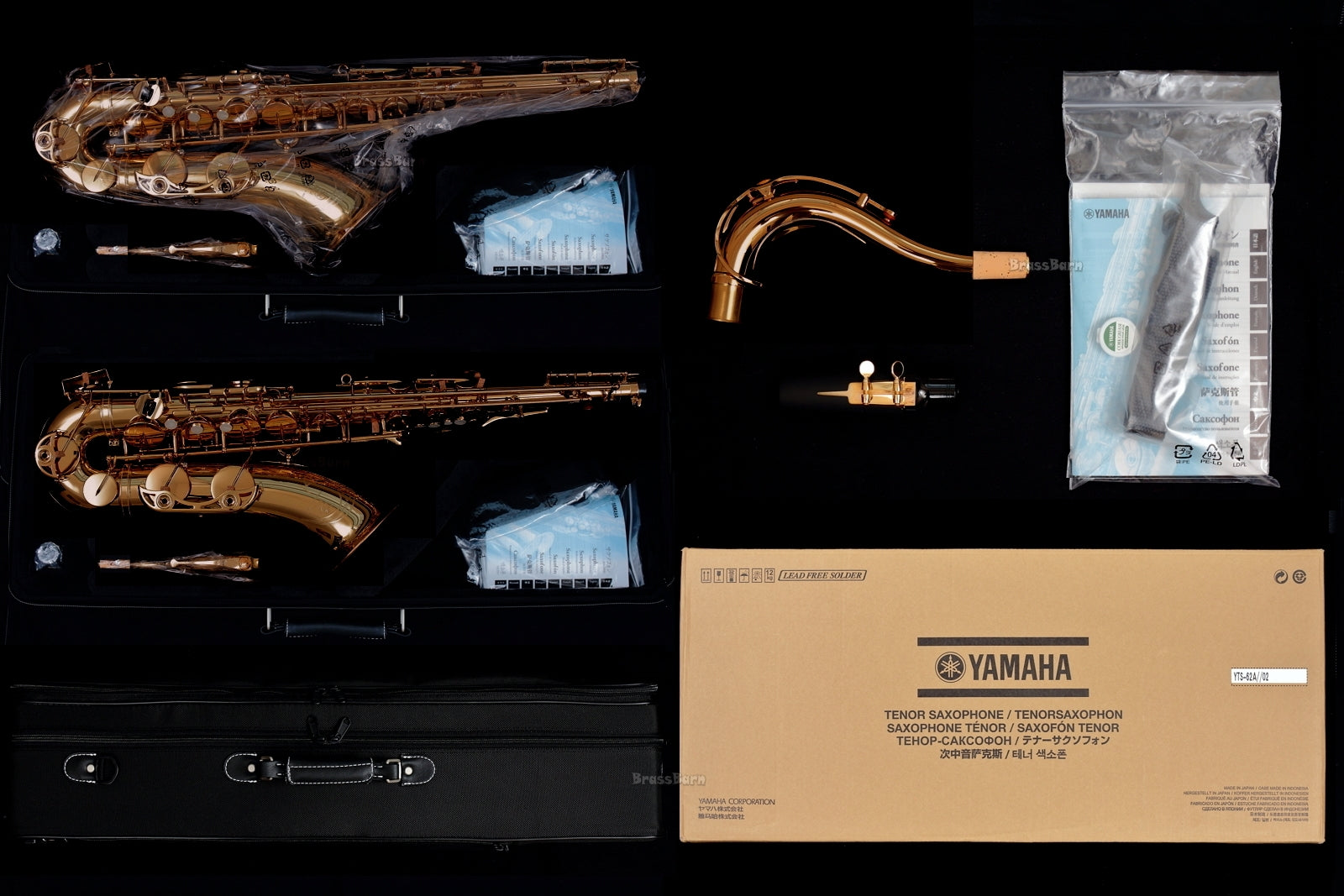 As the third generation YTS-62, it features a new 62 series neck, drawn tone holes, a new octave key, an improved low B - C# linkage for better response in the lower notes, a durable gold-lacquered brass finish, and exquisite new hand engraving on the bell. The kit comes complete with a deluxe Yamaha case, Yamaha 4C tenor mouthpiece, neck strap, cork grease, and polishing cloth, as shown in the last photo.