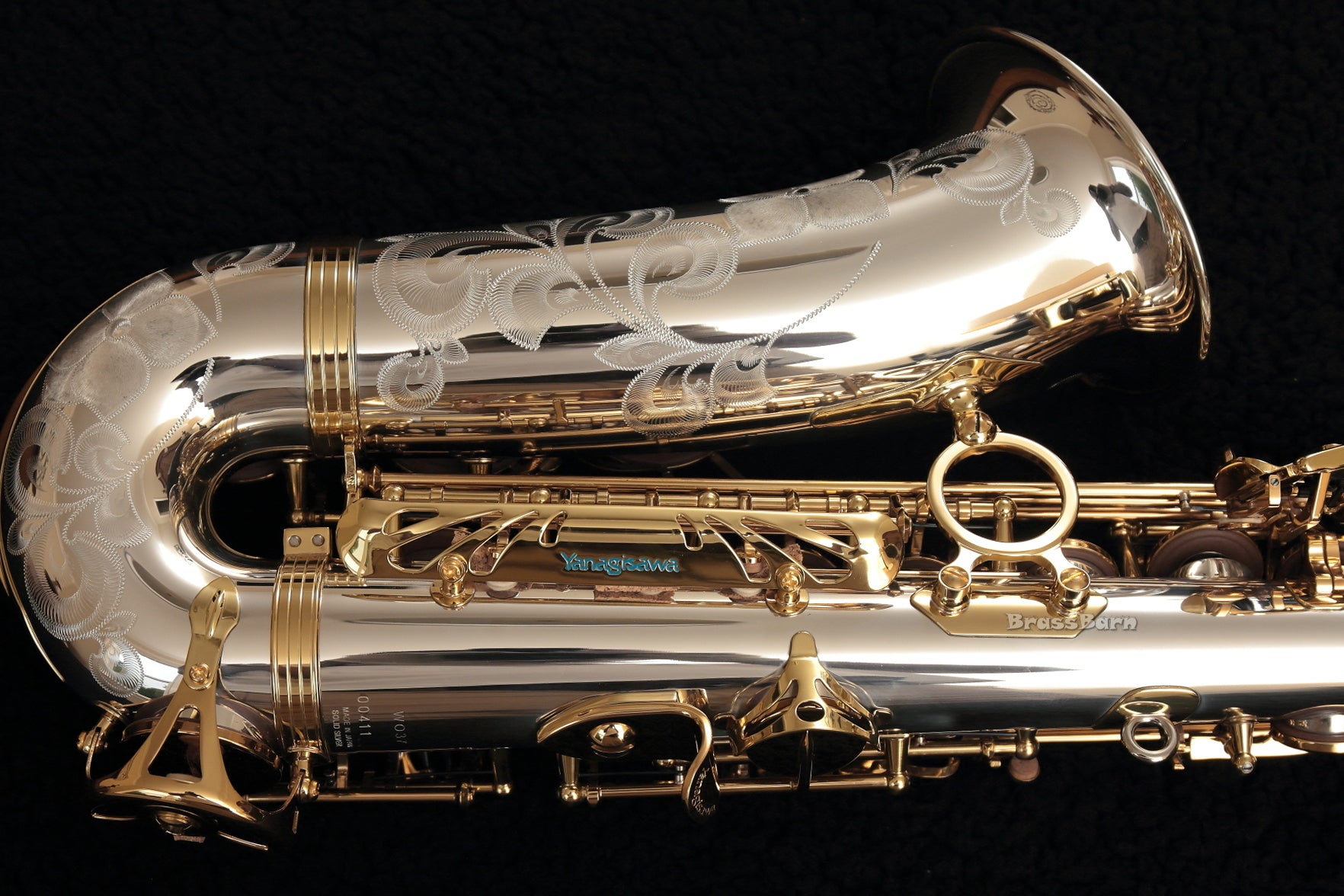 Shown is a display. You will receive a brand new unused factory-sealed Yanagisawa A-WO37 Elite Professional solid silver alto saxophone, the complete retail kit with a Yanagisawa warranty for Japan.